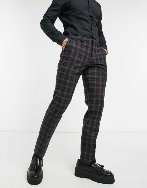 Pantaloni Completo Skinny Fit Grigio Scuro Quadri Uomo H M Ch