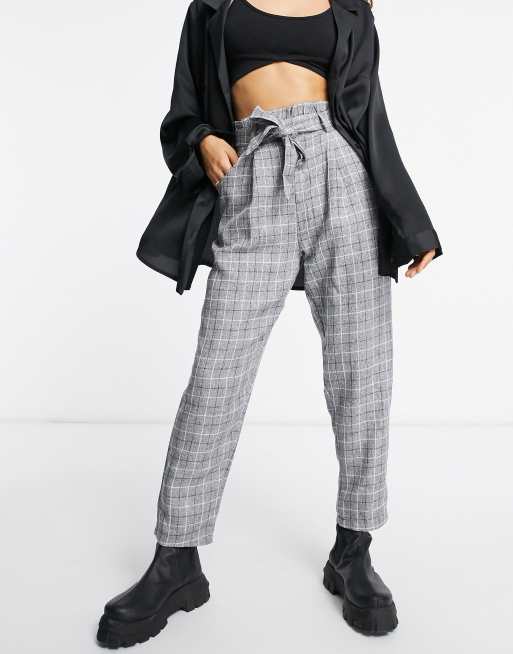 Kiomi Pantaloni Cropped Da Abito Grigi A Quadri Grigio Asos Grigio Lino Stileo It