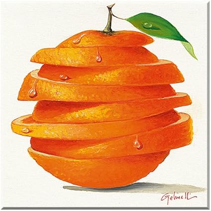 Orange Cut Quadro Su Legno Paolo Golinelli 30 Cm X 30 Cm Bordi 3 Cm Dipinti A Mano Mangiare E Berequadro Pronto Per Essere Appeso Amazon It Casa E Cucina