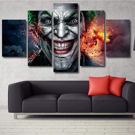 Fonice Stampe Su Tela Hd Poster Quadri Modulari Di Arte Della Parete Quadro 5 Pezzi Joker Face And Fire Paintings Soggiorno Decorazione Della Casa Amazon It Casa E Cucina