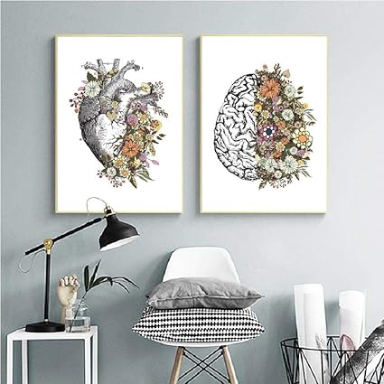 Nobrand Snumdqw Anatomia Vintage Cuore Floreale Cervello Arte Della Parete Tela Pittura Poster E Stampe Retro Quadri Murali Decor 40x60cmx2p Senza Cornice Amazon It Casa E Cucina