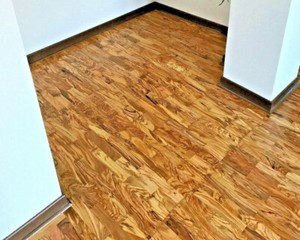 Quadri di noce incollati. Parquet prefinito con finiture rustiche 60 euro al metro quadro. Bamboo teak 25 euro al metro quadro. Nulla vieta certamente di posarlo ancora oggi in questo modo se piace.