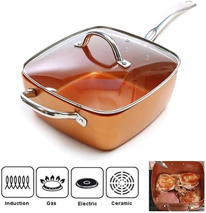 Maxell Power Padella Quadrata Casseruola In Ceramica Rame Antiaderenti Con Coperchio E Accessori Per Friggere
