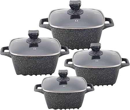 Sq Professional Nea Marbell Set Di Pentole Quadrate In Alluminio Pressofuso Con Rivestimento Antiaderente Effetto Marmo 4 Pezzi Nera Nera Amazon It Casa E Cucina