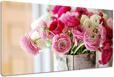 Fiori Vintage 12 Quadro 90x45 Cm Su Tela Shabby Chic Provenzali Peonie Rosa Ebay