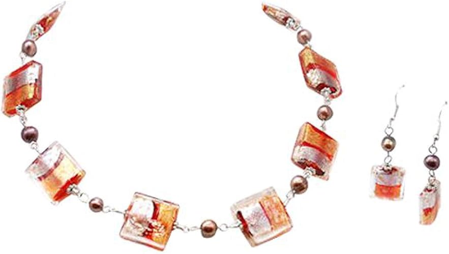 Toc Parure Con Collana E Orecchini Con Perle Di Vetro Quadrate Colore Arancione Rosso Amazon It Gioielli