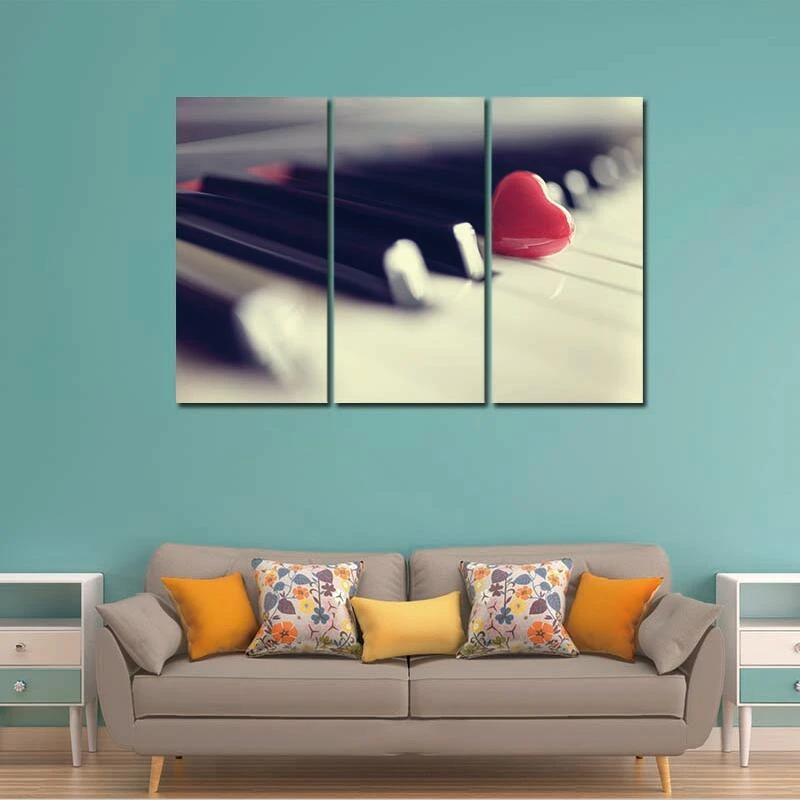 Stampe Su Tela Pittura Murale Cuore Rosso Su Pianoforte Moderno 3 Pannelli Floreali Giclee Artwork Fiori Musica Quadri Dipinti Su Tela Paintings On Canvas Canvas Printspainting Picture Aliexpress