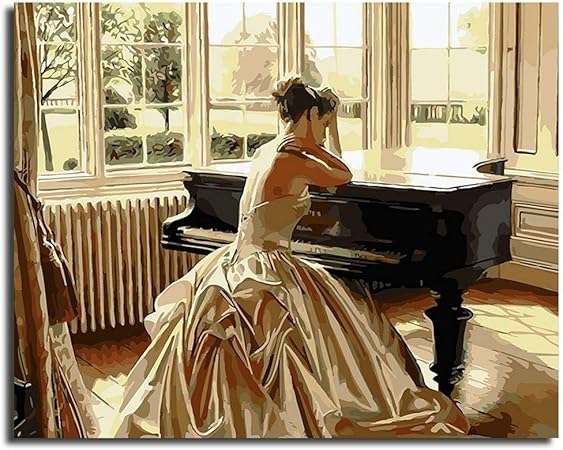 Wuchongshuai Di Numeri Su Tela Fai Da Te Dipinto A Mano Da Numeri Pittura A Olio Kit Di Pittura Digitale Donna E Pianoforte Quadri Astratti Moderni Per Soggiorno Casa Decorrame Amazon It Casa E
