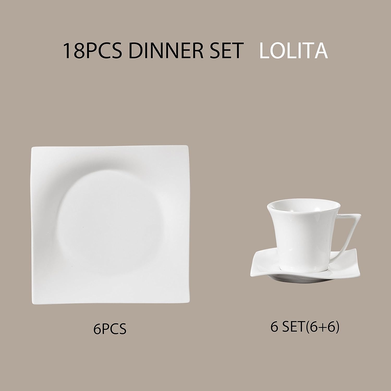 Malacasa Serie Sofia 18 Pezzi Servizio Piatti In Porcellana Bianca Con 6 Piatti Da Dessert 6 Piatti Fondi E 6 Piatti Per 6 Piatti Quadrati Piatti Porcellana