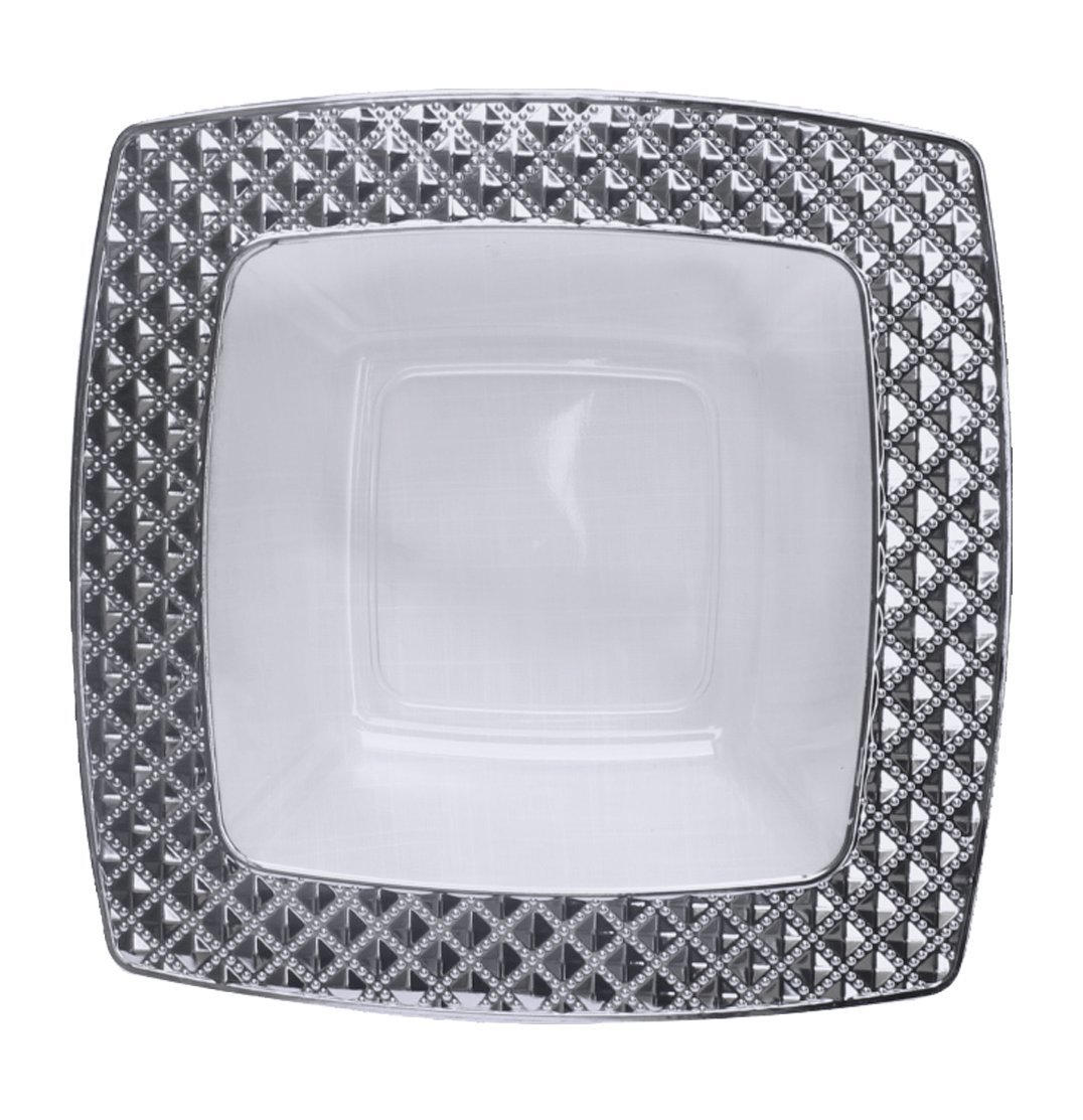 Piatti Commercio Industria E Scienza Decorline Stoviglie Plastica Quadrati Deluxe Piatti Di Plastica Usa E Getta Per Feste Decorate Party Color Transparente Con Bordo In Argento Diamond Collection Piatti 16x 16 Cm