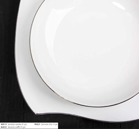 Fade Servizio Completo 39 Piatti Senna Bianco Filo Platino Per 12 Persone Tavola In Porcellana Alta Qualita
