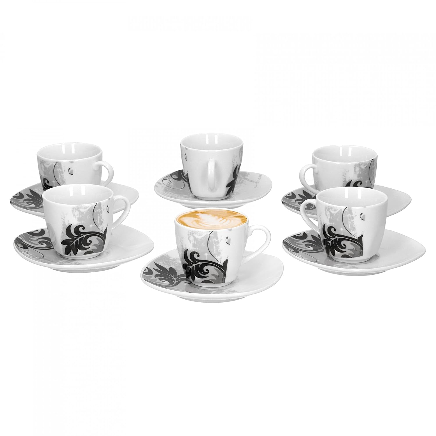Motivo Fiori Neri Van Well 12 Pezzi Colore Bianco 6 Persone Servizio Di Piatti Quadrati In Porcellana Servizi Da Tavola Casa E Cucina