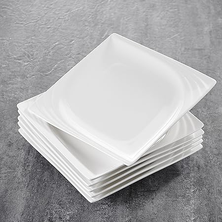 Malacasa Serie Sofia 18 Pezzi Servizio Piatti In Porcellana Bianca Con 6 Piatti Da Dessert 6 Piatti Fondi E 6 Piatti Per 6 Piatti Quadrati Piatti Porcellana