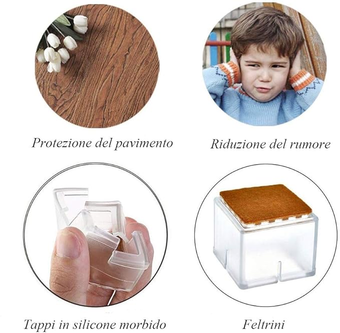 Protezioni Per I Piedini Delle Sedie Tappo In Silicone Per Piedino Per Sedia In Legno Con Feltro Quadrato 16 Pezzi Per Anti Scratch Colore Clear Amazon It Casa E Cucina