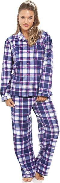 Pigiama Lungo Con Bottoni Flanella Quadri Blu E Viola 44 46 Amazon It Abbigliamento
