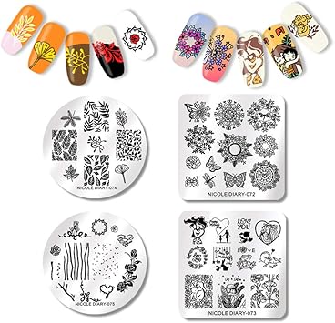 Nicole Diary 4pcs Timbratura Di Placche Per Unghie Quadrate Rotonde In Acciaio Inox Modelli Di Stencil Fiori Festa Della Mamma Cuore Rosa Timbratura Per Unghie 6cm 6cm Amazon It Bellezza