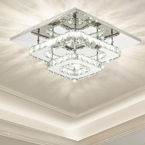 Vindeng Cristallo Quadrata Led Lampada Da Soffitto 36w Cromato Plafoniera Decorative Per Corridoio Foyer Balcone Moderna Plafoniera 2 Strati Bianco Caldo Amazon It Illuminazione