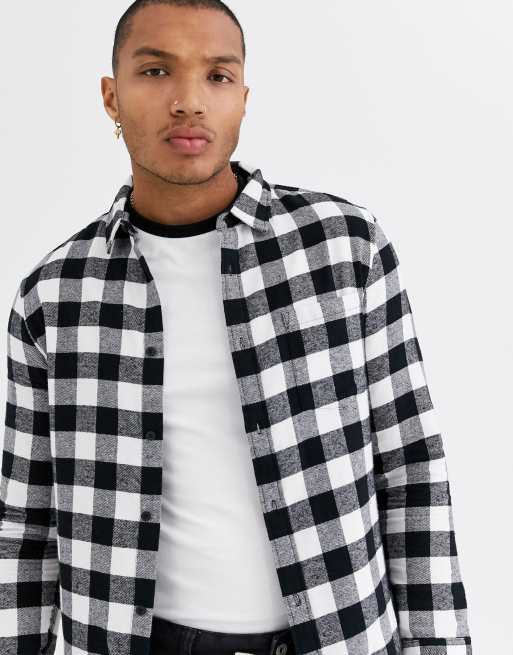 Bershka Buffalo Plaid Shirt In White And Black Asos