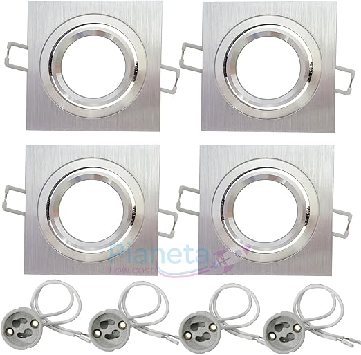 A4 Kit 4 Porta Faretti Quadrati Orientabili Da Incasso Alluminio Spazzolato Portafaretto Con Ghiera Blocca Faretti E 4 Attacchi Gu10 In Ceramica Incluso Amazon It Illuminazione