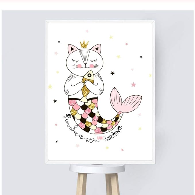 Amazon Co Jp Sirena Principessa Gatto Pesce Tela Pittura Cartoni Animati Poster E Stampe Quadri Su Tela Immagini Per Ragazza Decor Camera Da Letto 50x70 Cm Senza Cornice Home Kitchen