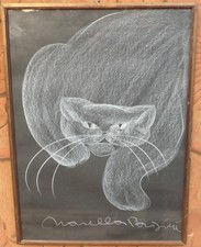Quadro Gessetto Su Cartoncino Originale Novella Parigini Gatto Annunci Milano