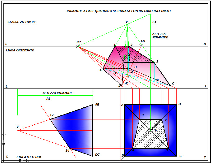 Prospettiva Centrale Di Una Piramide A Base Quadrata By Lezioni Di Disegno Tecnico Liceo Scientifico