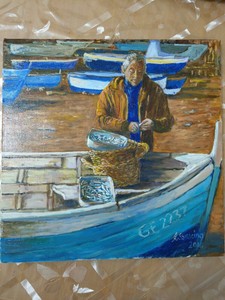 Dipinto Olio Su Tela Di Pescatori In Mare Antiquariato Su Anticoantico