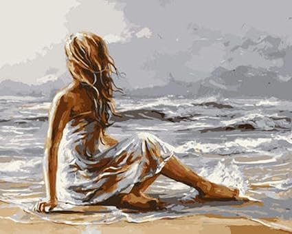 Pittura Ad Olio Con Numeri Quadro Incorniciato Dai Numeri Dipinto Dai Numeri Per Adulti Acrilico Spiaggia Donna La Pazienza E La Comprensione Della Pittura Possono Essere Condivise Da Adulti E Bambi Amazon It