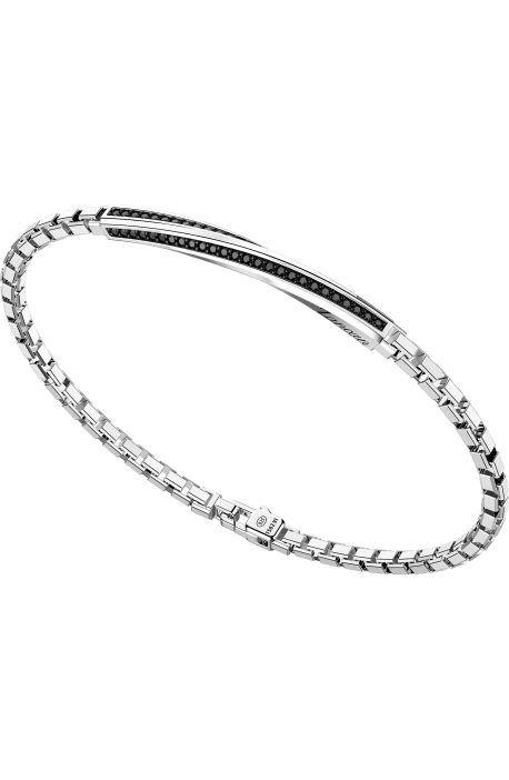 Bracciale Uomo Argento 925 Zancan Insigna Maglia Quadra Barra Spinelli Neri Torcion Opera Italiana Jewellery