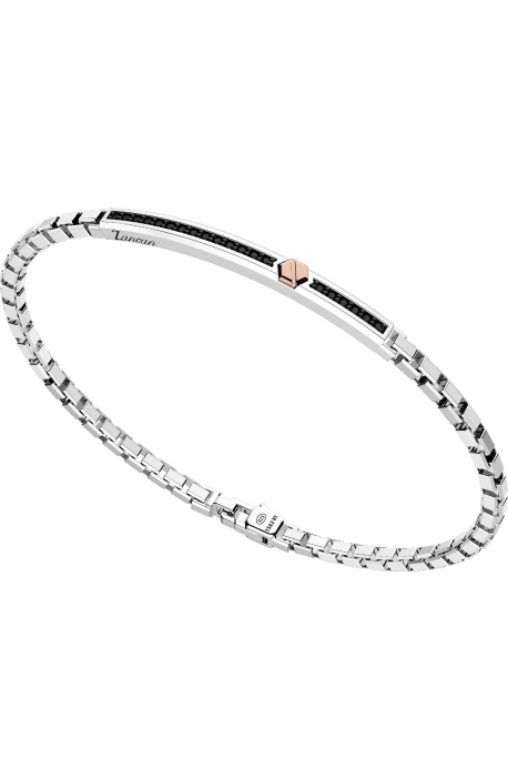 Bracciale Uomo Argento 925 Zancan Insigna Vite Oro Rosa Maglia Quadra Barra Spinelli Neri Spazio Lusso
