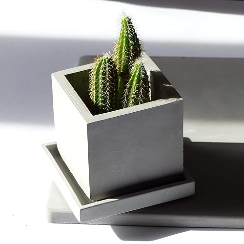 Atelier Ideco Fiori In Vaso Quadrati Grigio Cemento Con Fori Di Drenaggio E Piattino In Allegato Amazon It Handmade