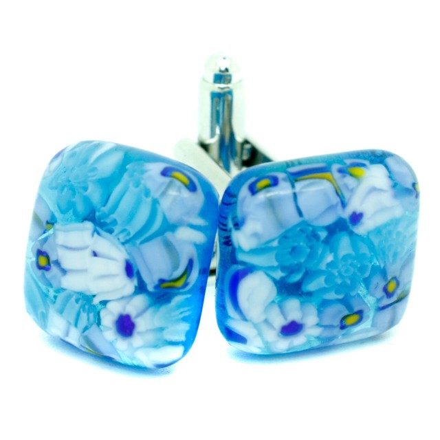 Gemelli Murano Vetro Blu Bianco Giallo Quadrato Fatto A Mano Da Venezia Ebay