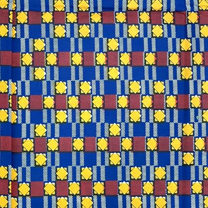 Tessuto Wax Africano Blu Navy Quadrati Gialli E Rossi Per 50 Cm Amazon It Casa E Cucina