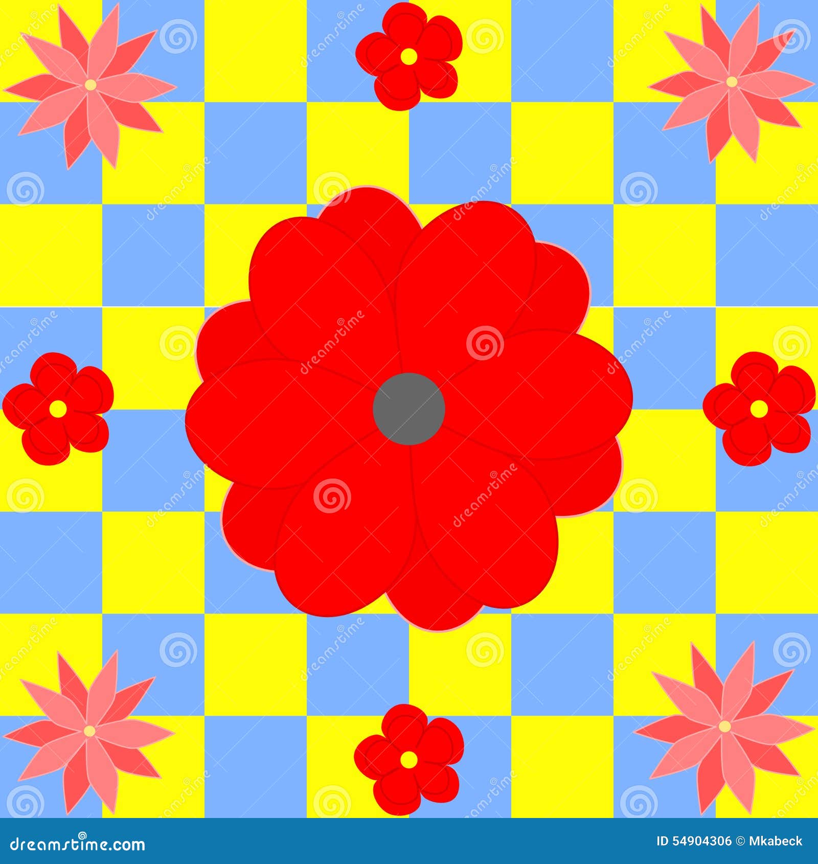 Fiori Rossi Differenti Sui Quadrati Gialli E Blu Illustrazione Vettoriale Illustrazione Di Colorful Vettore 54904306