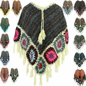 Hippie Poncho Crochet Granny Squares Amp Tassel Fringe Wool Shawl Wrap Cape Knit