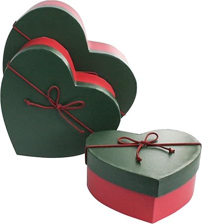 Bianco Interno A Quadri E Nastro Rosso Scatola Rossa Con Coperchio Verde Scuro Emartbuy Set Di 3 Lusso Rigido A Forma Di Cuore Confezione Regalo Di Presentazione Materiali Per Imballaggio Buste E