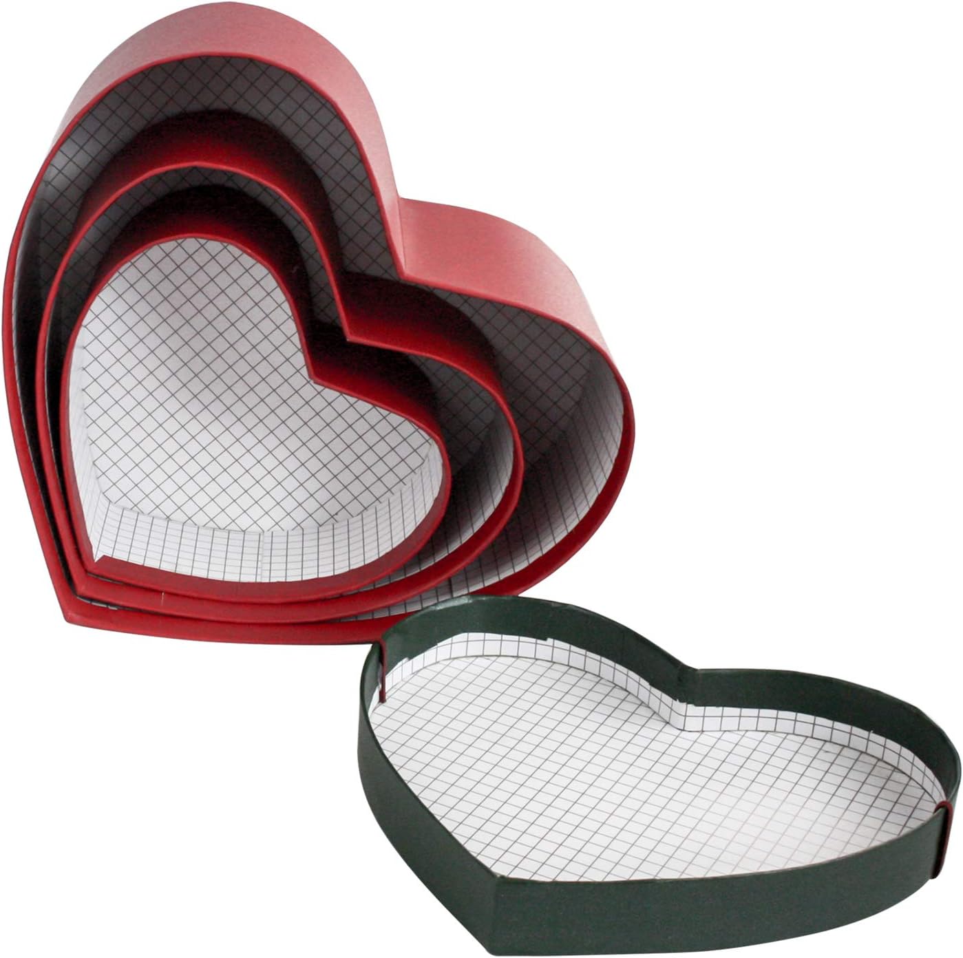 Scatole Da Regalo Scatola Rossa Con Coperchio Verde Scuro Bianco Interno A Quadri E Nastro Rosso Emartbuy Set Di 3 Lusso Rigido A Forma Di Cuore Confezione Regalo Di Presentazione Cancelleria E