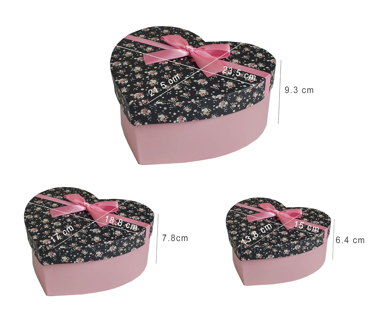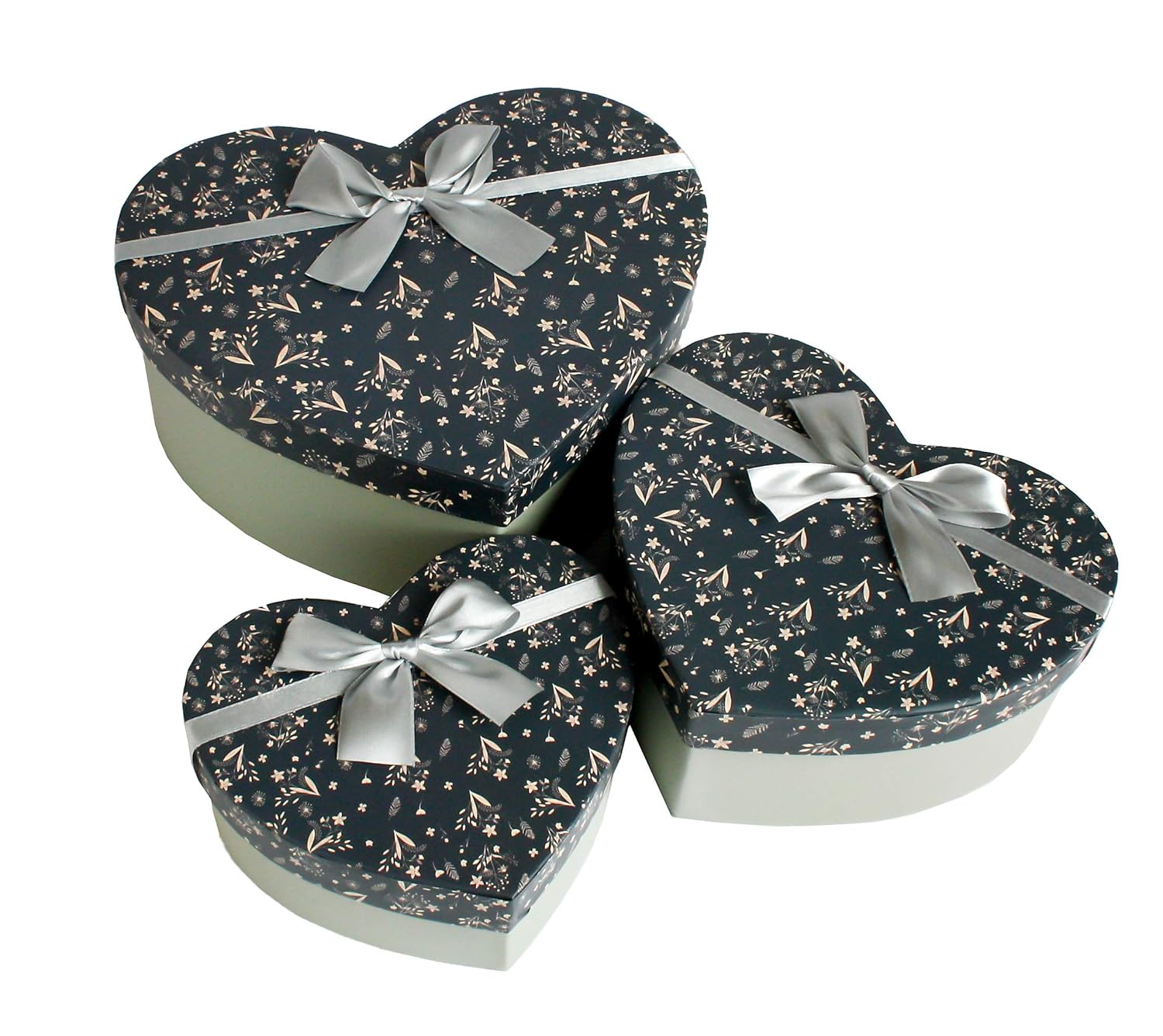 Cancelleria E Prodotti Per Ufficio Scatola Grigia Con Coperchio Floreale Bianco A Quadri Interno E Nastro Dargento Emartbuy Set Di 3 Lusso Rigido A Forma Di Cuore Confezione Regalo Di Presentazione Scatole