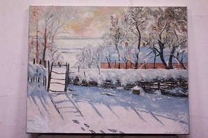 Quadro Pittura Olio Su Masonite Paesaggio Invernale Cornice In Legno Abbinata Ebay