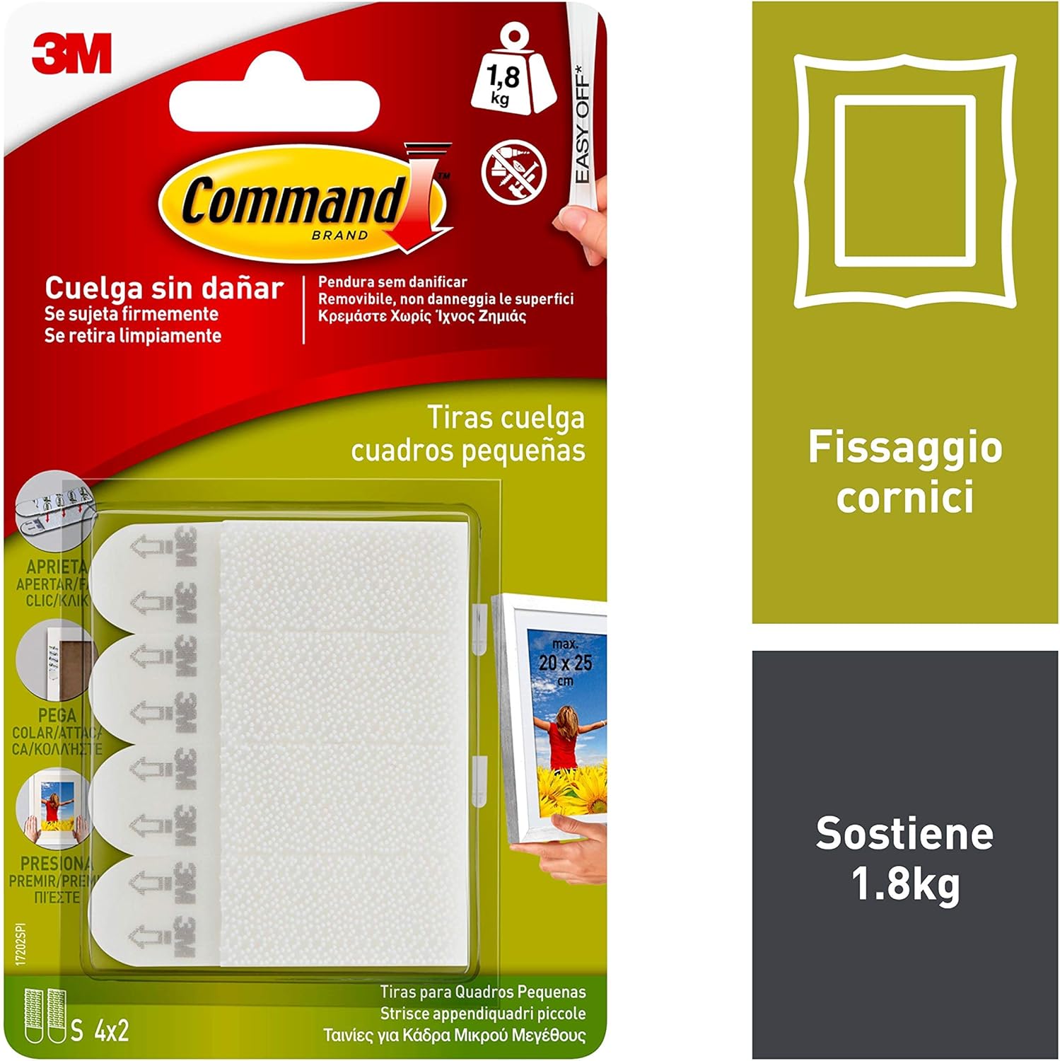 Command Strisce Appendiquadri Piccole Set Di 8 Strisce Adesive Rimovibili Per Appendere Quadri Cornici Poster Foto Su Muro E Pareti Senza Chiodi Peso Fino A 1 8 Kg Dimensione 20x25 Cm