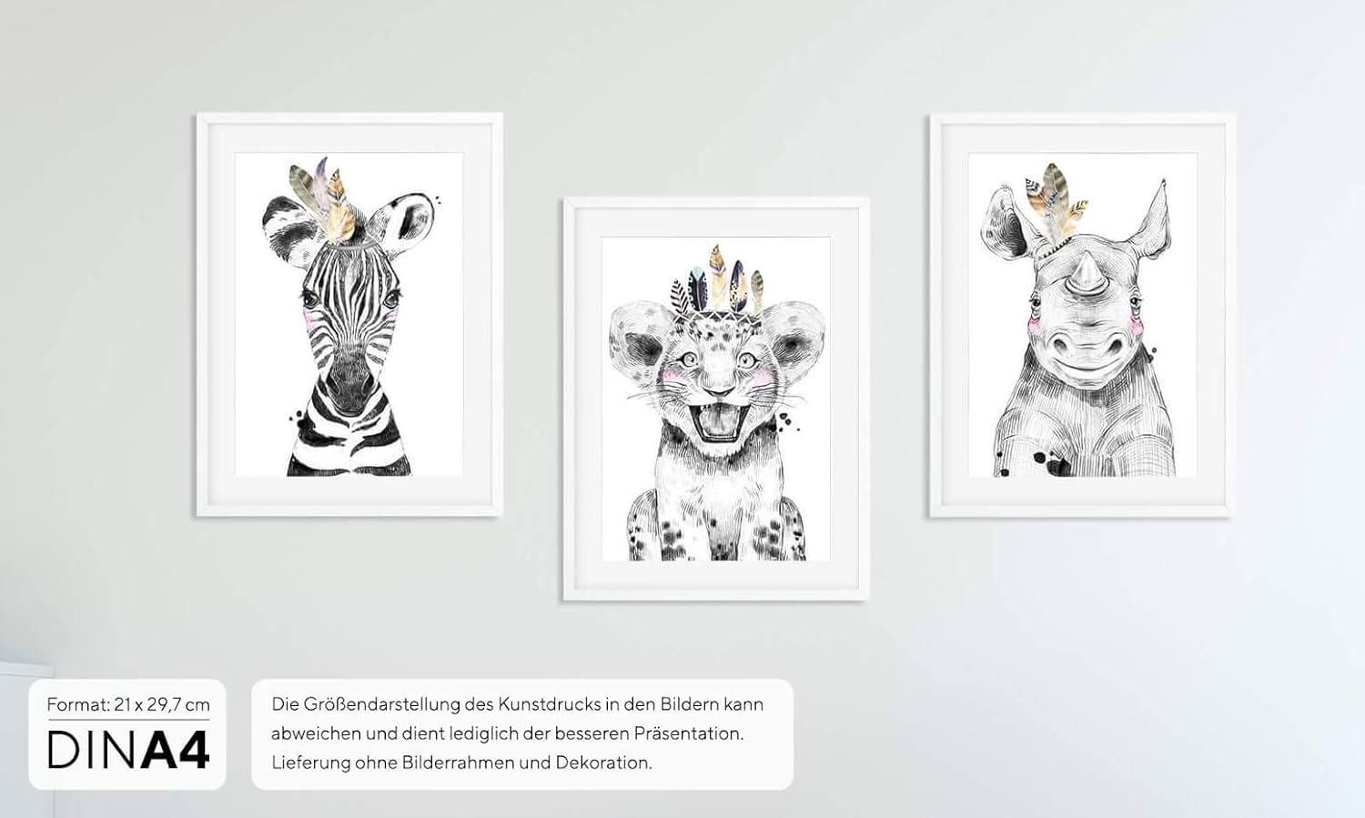 Graz Design 21 X 29 7 Cm Set Di 3 Quadri Da Parete Formato A4 W01 3er Setzebra Lowe Nashorn Boho Per Cameretta Dei Bambini Din A4 Decorazioni Cameretta Quadretti