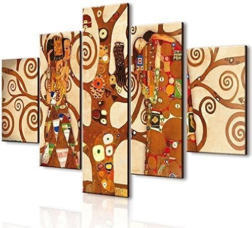 Dekoarte 429 Quadri Moderni Stampa Di Immagini Artistica Digitalizzata Tela Decorativa Per Soggiorno O Stanza Da Letto Stile Astrazioni Arte Albero Della Vita Gustav Klimt 5 Pezzi 180 X 85 Cm Quadri Homelook