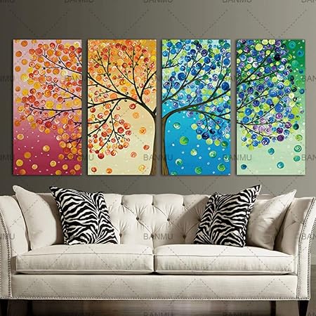 4 Pezzi 100 Quattro Colori Albero Della Vita Pittura A Olio Su Tela Wall Art Quadro Moderno Stampa Canvas Arredamento Arte 50 70cm 4 Amazon It Amazon It