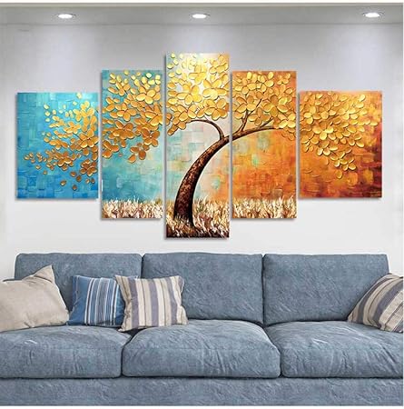 60tdfc Albero Foglia D Oro Stampe E Quadri Su Tela Quadro 5 Pezzi Carta Da Parati Murale Moderni Soggiorno Cameretta Decor Pittura Poster Regalo Paesaggio Animale Amazon It Amazon It
