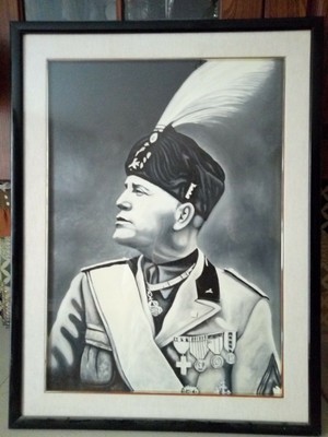 Ritratto Benito Mussolini Olio Su Tela 62x82 Con Piuma Ebay