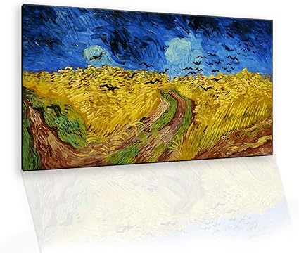 Quadri Famosi Alta Risoluzione E Brillante A431 Van Gogh Campo Di Grano Con Volo Di Corvi Stampa Su Tela Con Telaio In Legno Made In Italy 100cm X 60cm Amazon It Casa E