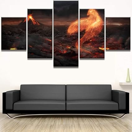 Zzhplanet Europa E America Quadri Modulari Immagini Su Tela Stampato 5 Pannelli Vulcano E Fenice Rossa Decorazioni Per La Casa Poster Pittura Per Soggiorno Cornice Amazon It Casa E Cucina
