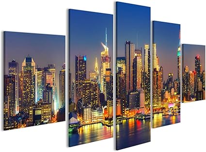 Islandburner Quadri Moderni Vista Di Manhattan Di Notte New York Stati Uniti D America Stampa Su Tela Quadro X Poltrone Salotto Cucina Mobili Ufficio Casa Fotografica Formato Xxl Dyv Amazon It Casa