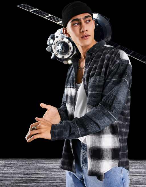 Fodesep Design Camicia Oversize Anni 90 Bianca E Nera A Quadri In Flanella Spazzolata Fodesep