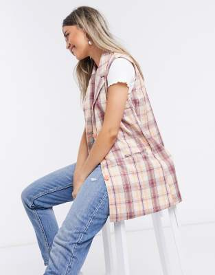 Blazer Oversize Senza Maniche A Quadri Anni 90 In Coordinato Daisy Street Multicolore Donna